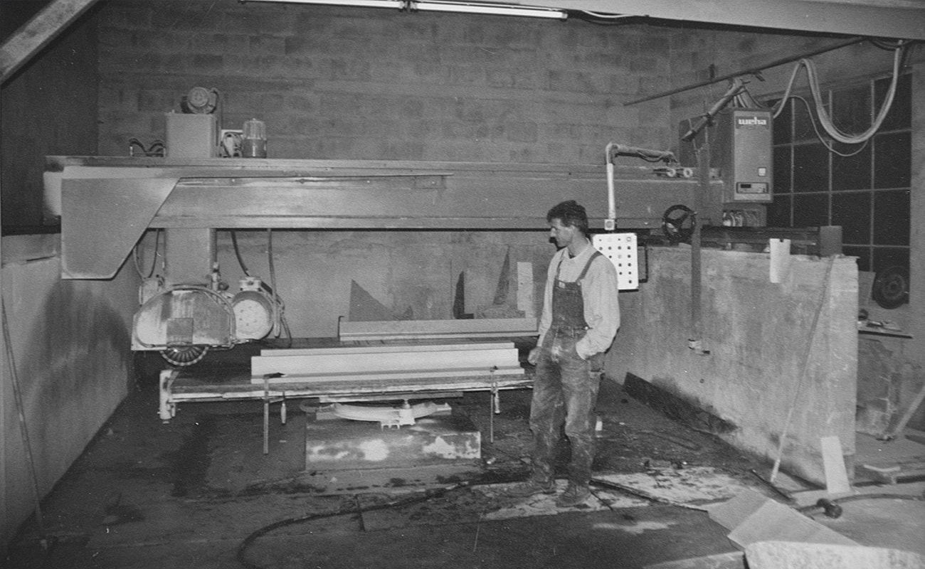In einer kleinen Lagerhalle, in Maria Loretto (ca. 40Min von Wien-Zentrum entfernt) spezialisierte sich, der damals 28 Jahre alte Steinmetzmeister auf Natursteinarbeiten wie z.B. der Fertigung von Küchenarbeitsplatten. Enorme Investitionen waren erforderlich um spezielle Bearbeitungen von Naturstein anbieten zu können. Zu einer der ersten großen Investitionen zählte unter anderem die Wasserstrahlschneideanlage „WATERSTAR“, welche erstmalig in Österreich ausgeliefert wurde. Neben dem Bau einer eigenen Produktionsstätte mit Büro, war auch der Kauf des Bearbeitungszentrums „Brembana Speed 3“ und der computergesteuerten Brückensage unumgänglich. Es entwickelte sich ein breit gefächertes und sehr individuelles Produktsortiment, welches man schon damals, mit standardisierten Steinmetzarbeiten nicht vergleichen konnte.